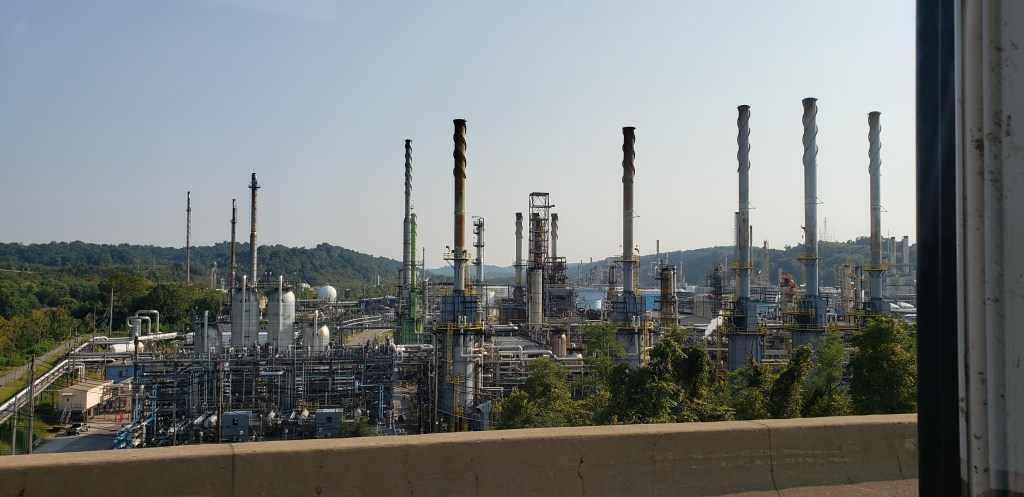 Great little KOA campground we stayed at last night in Grayville, Ill…2 miles from the Indiana state line.π€ ππLouisville, KY…one of several cities we drove thru to avoid Chicago ππ€¦ββοΈπ€¦π»ββοΈTaco truck for lunchππOnly a few horse farms, we’re too far north πOn the Kentucky / West Virginia border. We saw SO MANY oil refineries on this trip!! This is only about half of this one…the ones out West were 3-4 times this size, at least π³