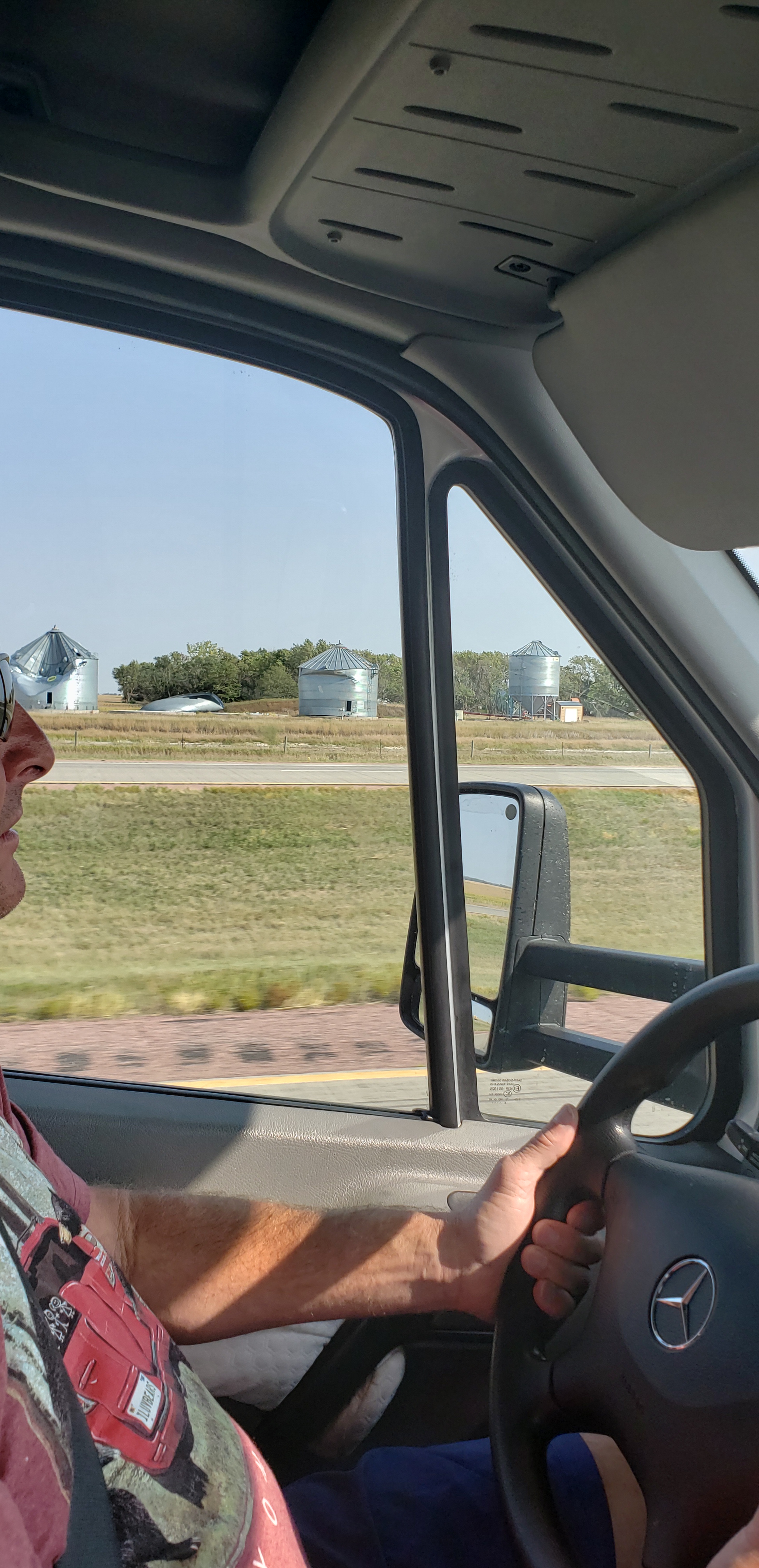 One of the few times we were up to catch the sunrise πSunrise over the prairie in Presho, SD 1st Breakfast “out” the entire trip! What a treat!πWhat a beauty π πThe Missouri River…we crossed over several times as we drove down the eastern side of Iowa on I29Tornado damage πͺ in rural South Dakota A piece of a silo a few miles down the road. Creative bridge design in Council Bluffs, IATook a 10 minute side trip to enter Nebraska π I’ve driven through previously, but now the RV was “officially” there!